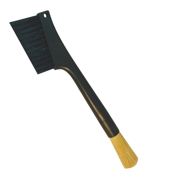 Natural food-grade bristles excel at collecting large and small grinds alike.