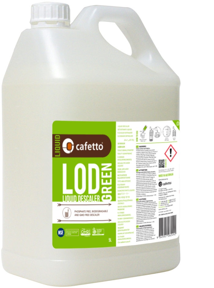 An eco-friendly liquid descaler which rapidly and easily removes lime scale and calcium build up from metal surfaces in contact with hot water such as espresso machine water tanks, coffee brewing and other hot water equipment.